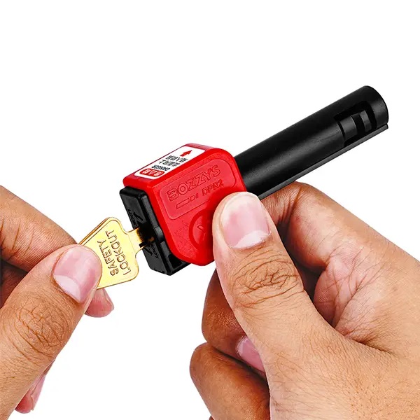 Блокиратор миниатюрных автоматов DPR1 малый, подходит для большинства однополюсных и много- полюсных автоматов европейского типа с размером отверстия предохранителя 10 мм. Блокиратор очень легок и прост в использовании, вставляется в отверстие предохранителя до щелчка и запирается ключом. Изготовлен ABS пластика и полиамида. Подходит для автоматов до 60А. Ключ и тело блокиратора имеют одинаковый уникальный номер для простой и быстрой идентификации.